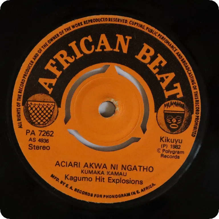 Ungoogleable Kikuyu Kenya benga double sider with a kick off on part 2. Record is VG- w/ surface noise & multiple pops from marks, also a skip on second part of A side from a small mark running almost