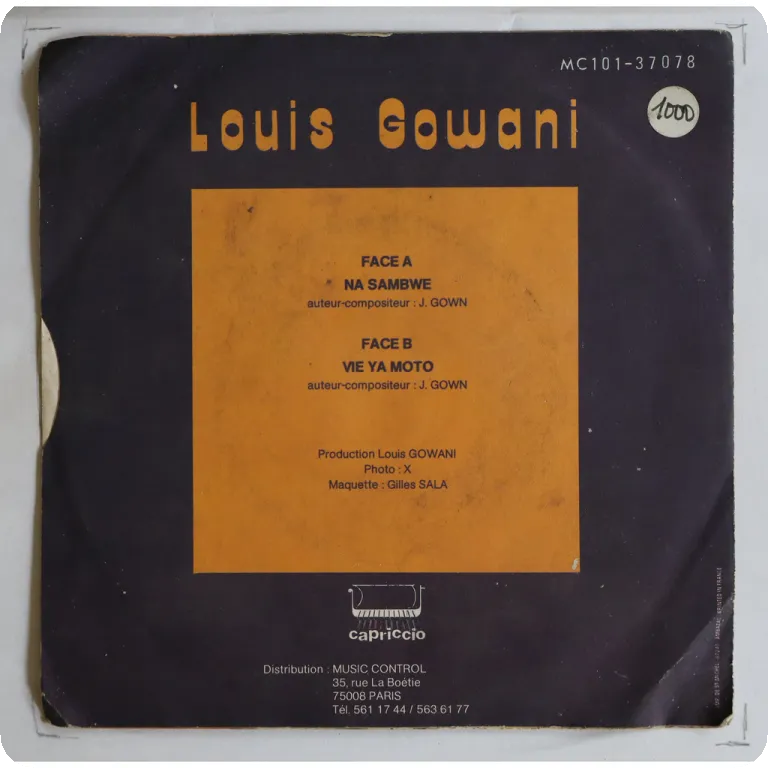 Kenyan production of Congolese rumbas. Peel off & writing on one label, rubber stamps residues on both labels. Record plays VG- to VG, reasonable to light noise & clicks from marks, several clicks at