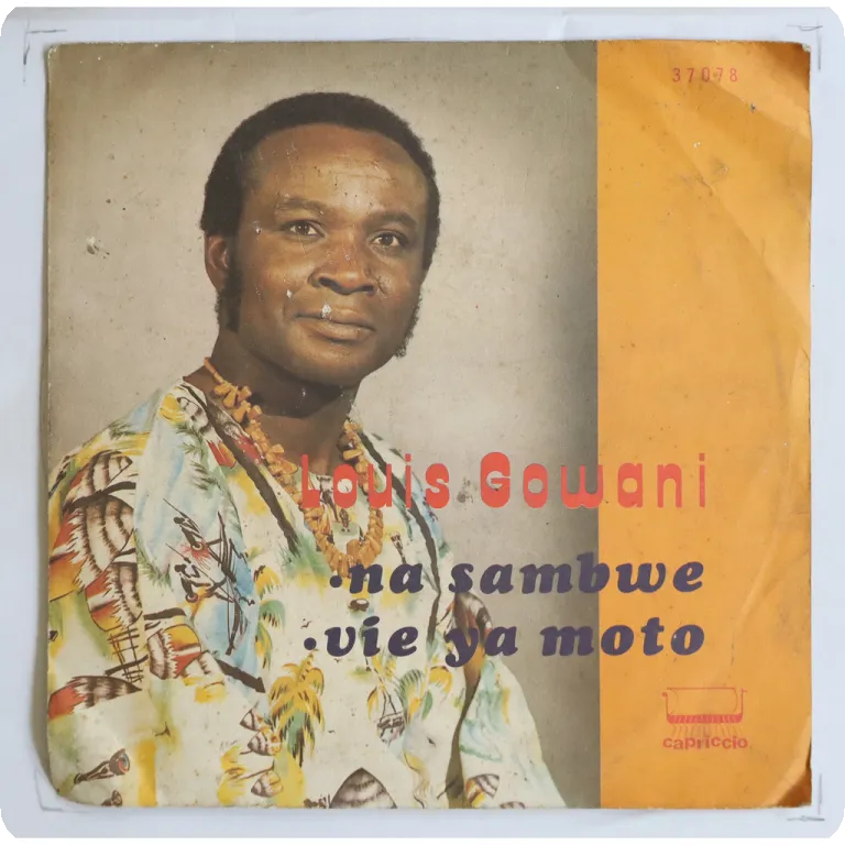 2 single only rumbas by the Brazzaville superstars, later compiled on LP, sleeve has aging & dirt, bite & tears on mouth, 5" split on spine, 3" split on top, ringwear & shop stamp on back, writings on