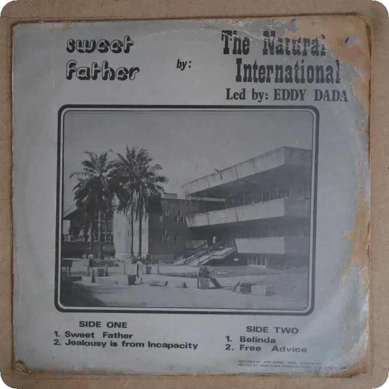4 tracks Nigerian soukous w/ 2 dancefloor tunes the uptempo "free advice" & the mid tempo "belinda". Sleeve w/ aging & strong dirt, large peel off, mini bite on top spine. Record plays with very