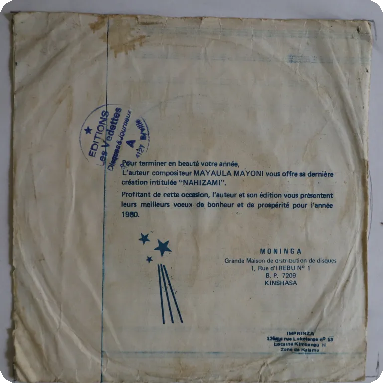 7inch (SP) | Cover / Rec > > VG / VG+ | Moninga star | Congo Zaire