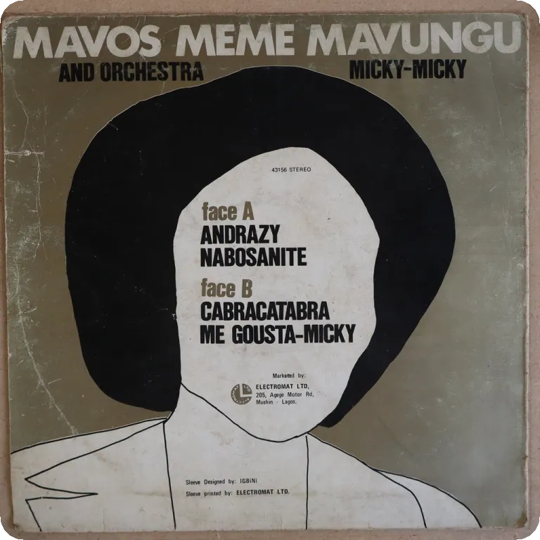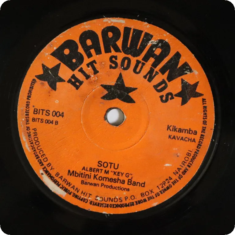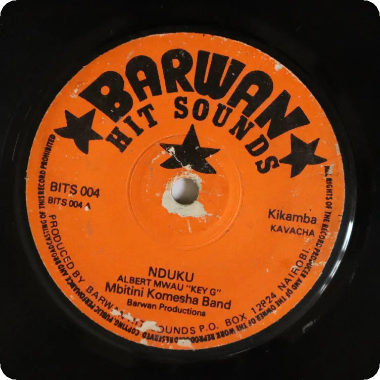 Kenyan production of Congolese rumbas. Peel off & writing on one label, rubber stamps residues on both labels. Record plays VG- to VG, reasonable to light noise & clicks from marks, several clicks at