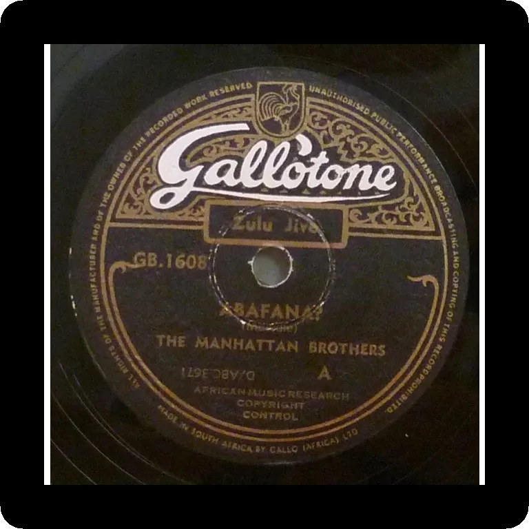 Zulu male vocal jive w/ jazz swing influences as recorded by the famous South African doo wop group. Record is V++ to E w/ a few minor marks & visible dirt wear & light pressing noise