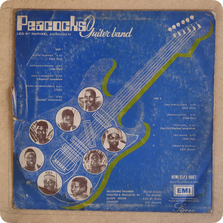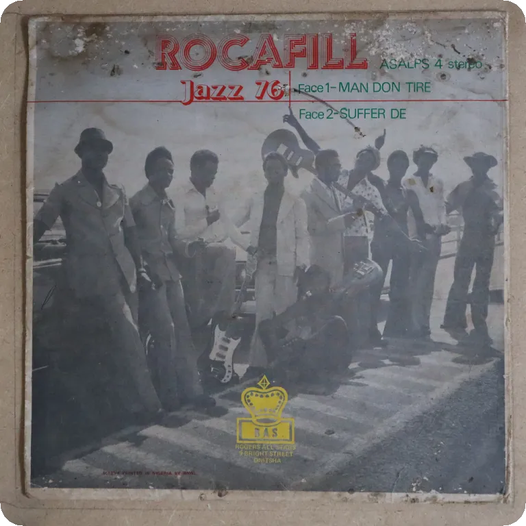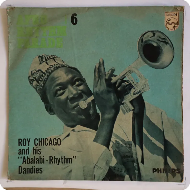 Nigerian trumpet highlife rarity. Sleeve has some aging & dirt, mini peel off on back, record plays solid VG- to VG, light to hardly noticeable noise from marks.