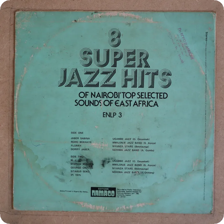Soukous classic w/ rhythm guitar led kick off parts 2 as recorded by Kenya based Congolese musicians. Sleeve has aging & beige dirt. Record plays w/ constant pressing hiss, varies from solid VG- to VG