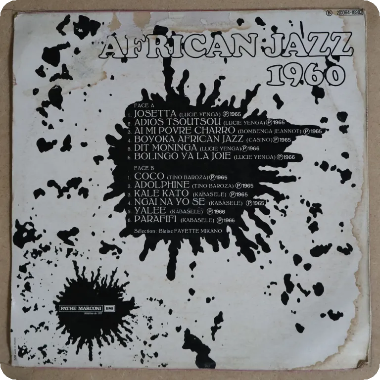 2 afro latin cuts on this scarcer compilation of 60's African jazz recordings, features the cha cha cha "A mi pobre charro" as well as the pachanga inspired "Boyoka African jazz" otherwise strictly 50