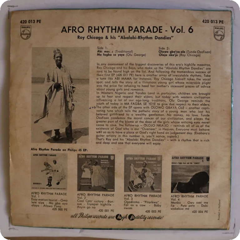 A rumba & a bolero on this mega rare Benin release, sleeve has dirt, bump & mini bite on mouth, shop stamp, beige stain & some ringwear on back, dirt on labels.