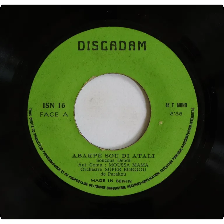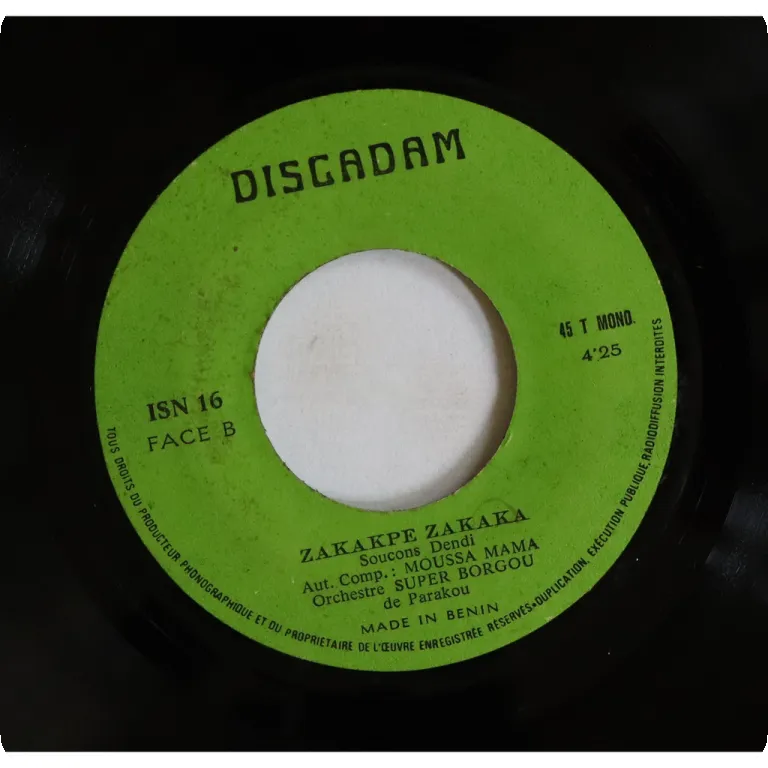 Northern Benin soukous double sider, ultra rare release, minor wear & dirt on labels, record has marks & noise, ruff pressing default hiss, solid G to solid VG- depending on parts.