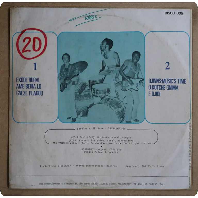Deep afro psych / afro pop funk lp from Cote d'Ivoire, sleeve has light wear, ringwear, dirt & small writings on back, record plays quite nicely, with quit reasonable to very light noise from marks