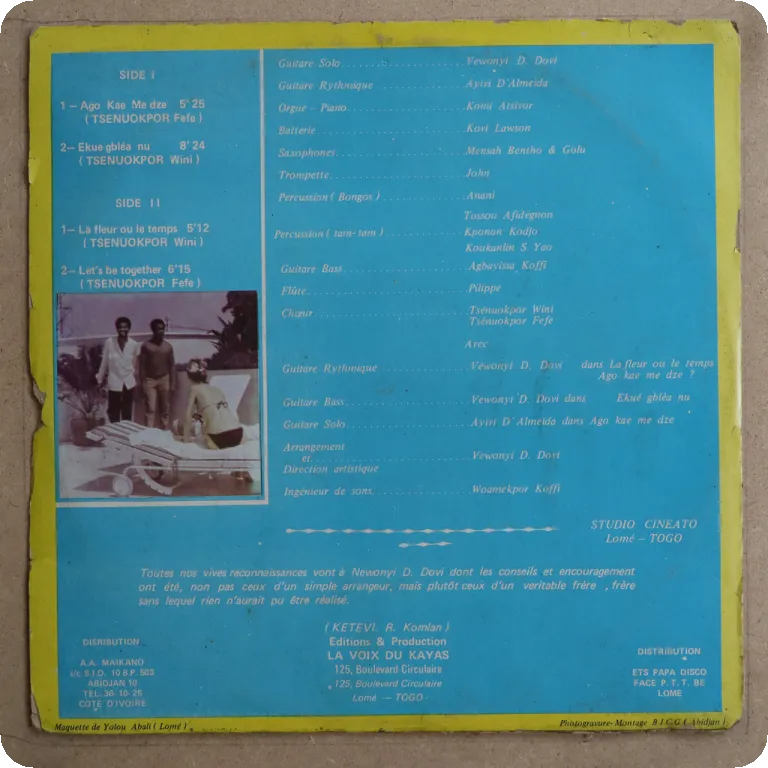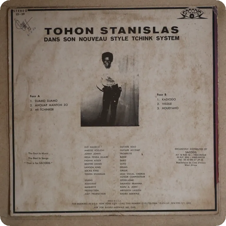 W/ the funky dancefloor afropop / afrobeat tune "Mi tchinker", a consistent hypnotic afro synth pop tchinkoume LP & a great roots reggae, wear on cover, dirt, small writings on back, light to hardly