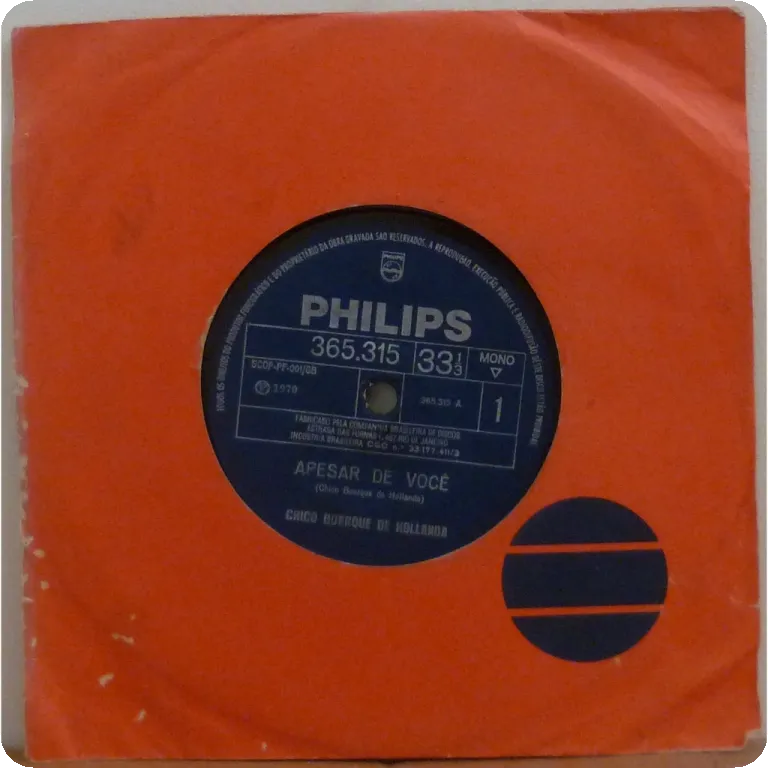 Single only partido alto samba anthem censored by the Brazilian dictatorship, sleeve has mini peel off, 1" split on bottom, small tear on centerhole. Small rubber stamp on B label. Record has light