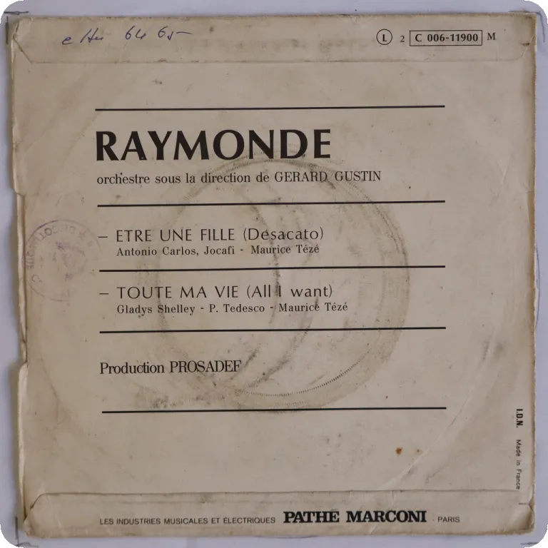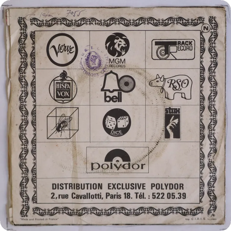 French version to Antonio Carlos and Jocafi's hit Desacato & pop soul crooner tune on this scarce French single. Wear & dirt on cover, bump along mouth, rubber stamps on cover & labels, sticker & mini