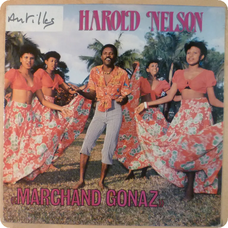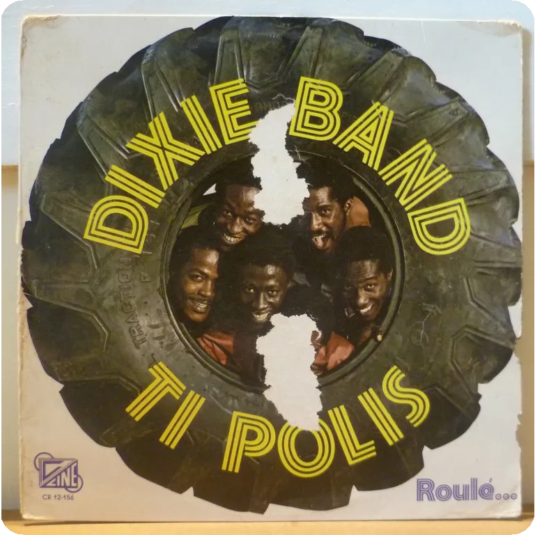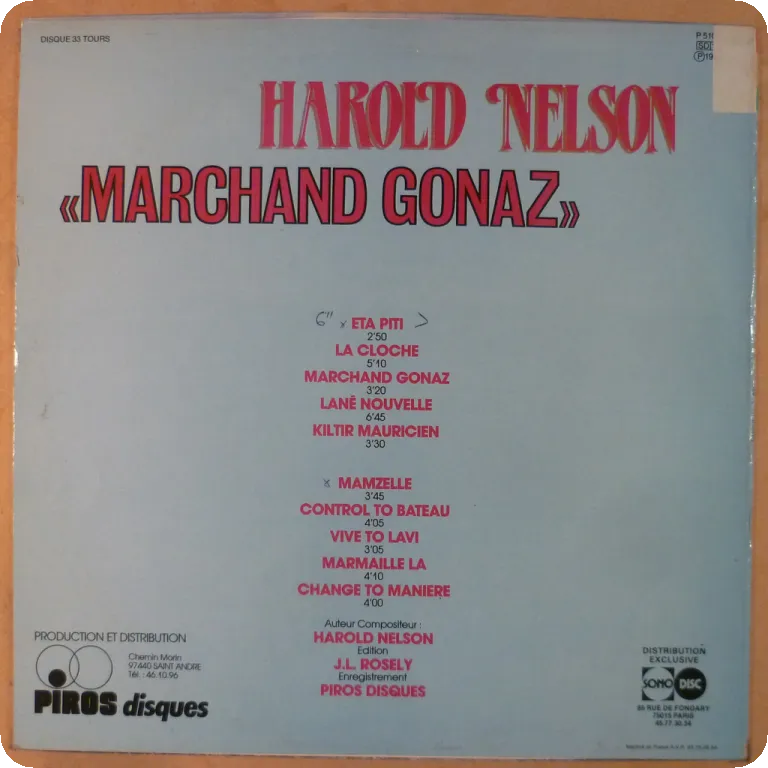Features an island psych soul, the cadence lypso "tire l'an main'r", a roots reggae "rasta find himself", aging on cover, 3" split on bottom, writing son labels, record has light occasional noise from