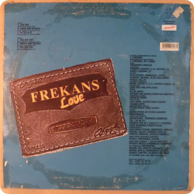 Zouk love, dancehall influenced zouk & straight zouk recorded in Paris by those French Caribbean artists. Sleeve has some light wear, writings & glue residue on back, writings on A label, record has