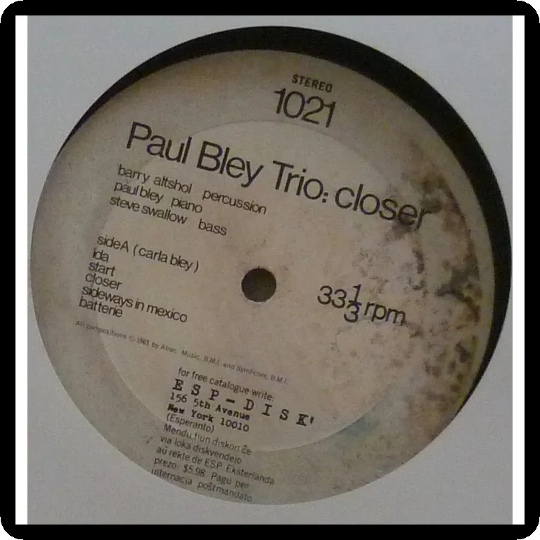 Modal jazz piano trio masterpiece by one of the leading figure of the genre on iriginal 1966 ESP stereo press Matrix / Runout (Side A Etched Runout) ESPS 1021A ORT-I DBH. Sleeve missing, peel off