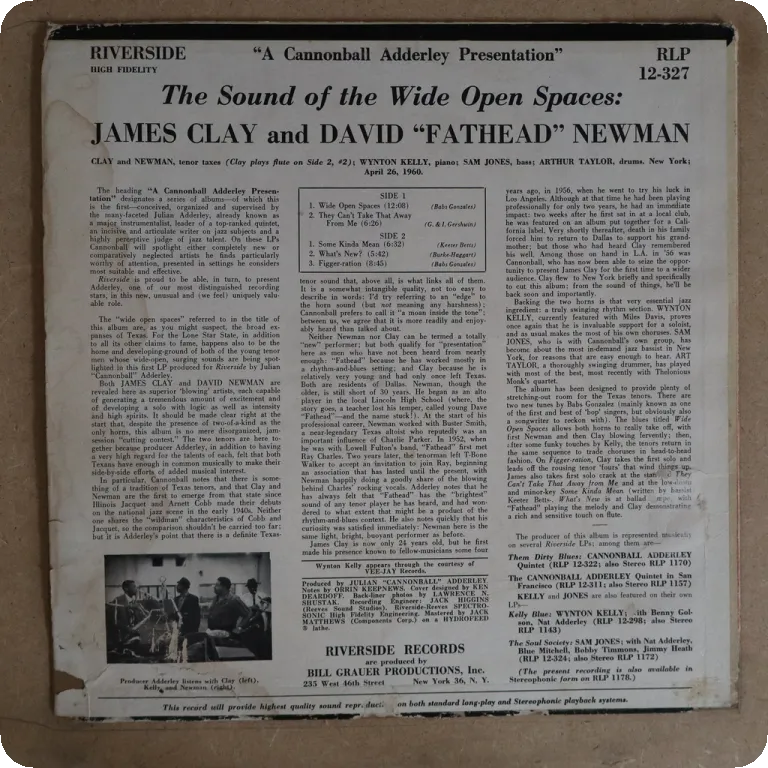 Top notch hard bop session with Wnton Kelly, Sam Jones & Arthur Taylor, wear & peel off on cover, large light brown water damage along mouth, reord has light to hardly noticeable noise, ranges from VG