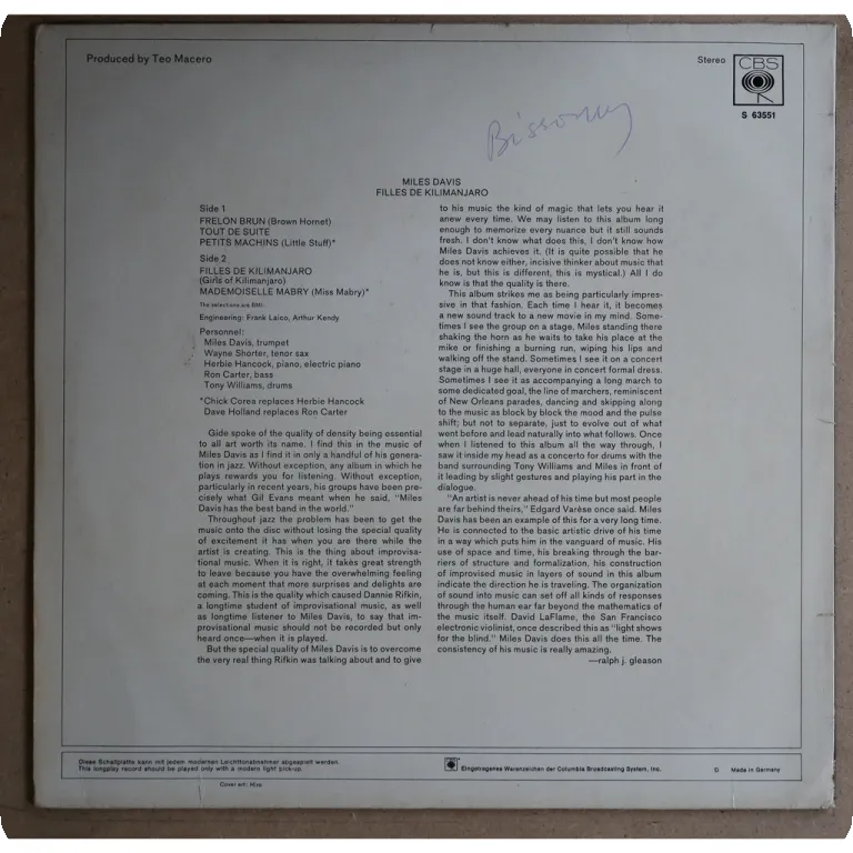 Spiritual / modal fusion masterpiece w/ Shorter, Hancock, Ron Carter, Tony Williams, Chick Corea & Dave Holland. Liht wear & dirt, writings on back, record has very reasonable to hardly noticeable