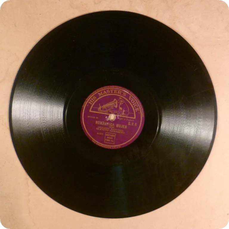A rumba w/ mambo vibe & an instrumental bolero on this release for the collectible G.V. series. Record is V+, great shape w/ the usual backing 78rpm pressing noise & some opaque dirt or pressing wear.