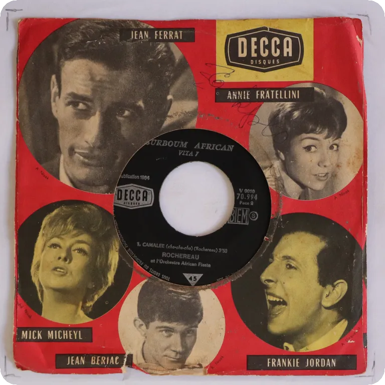 Bolero ritmico on top & solid rumba on this mega rare release by one of COngo Brazzaville's legendary orchestras.Sleeve is VG has wear & dirt, writings, writings on labels. Record is solid VG- to VG