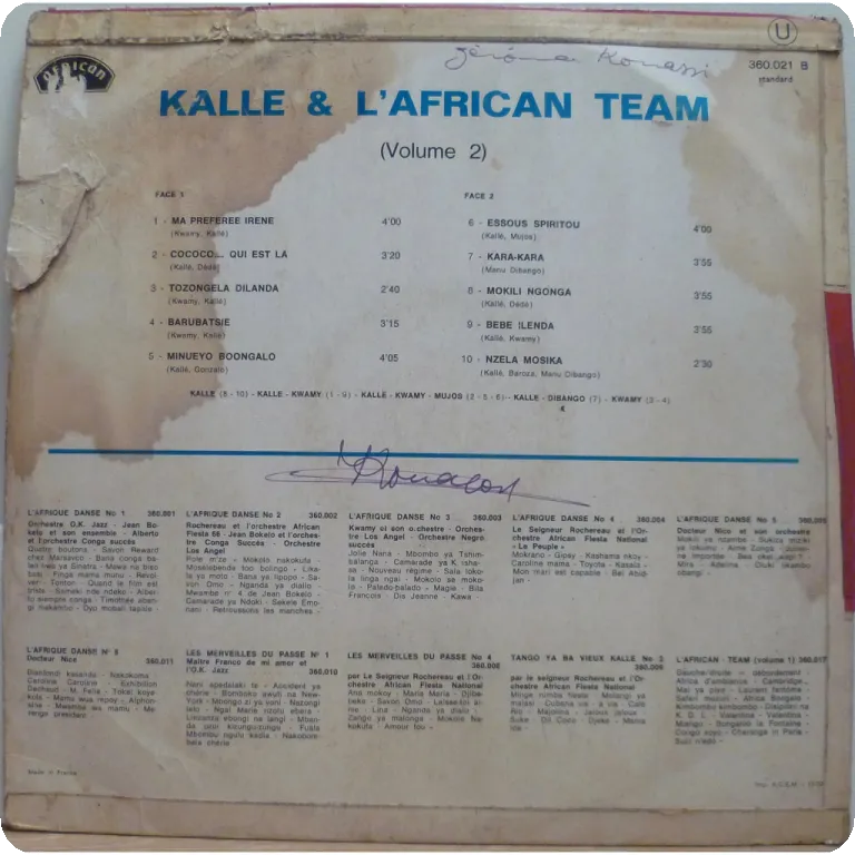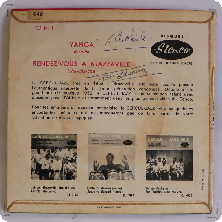 A cha cha cha & a rumba as recorded by the legendary Paris based group feat. Dibango, Kwamy, Kalle & Don Gonzalo. Sleeve has a bit of aging/dirt, large writings on back & labels,
