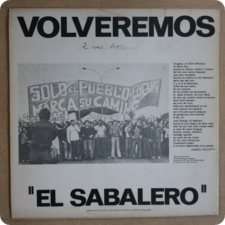 Paris recorded Uruguayan acoustic guitar led protest songs privately pressed in Holland by the singer. Writings on back & light wear, record in top shape.