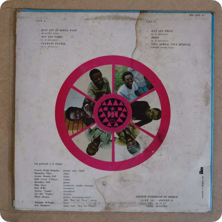 feat. the afrolatin classics "La combinacion de Gnonnas" & "kandevie", a cover of the highlife track "Don't beat the time", the agbadja tune "Avivogbe". Sleeve has light aging & dirt, ringwear, light