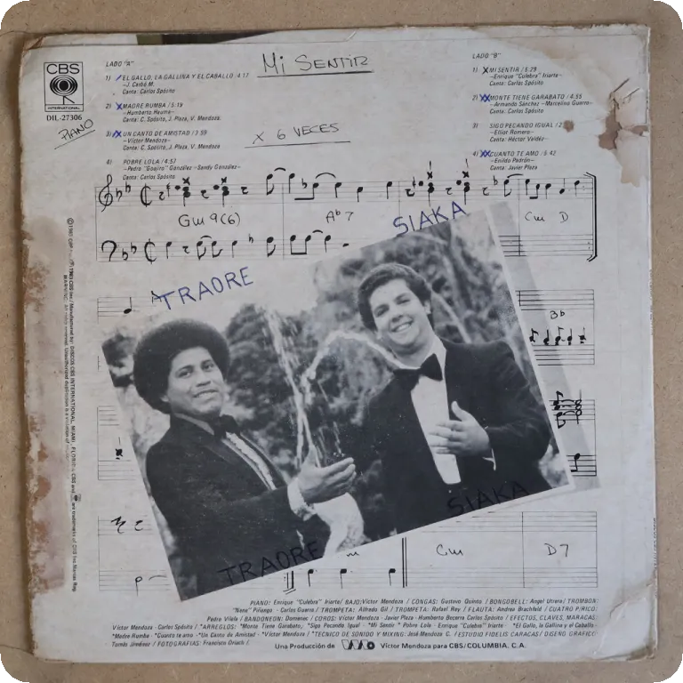 Solid dancefloor filler salsa tracks "Pobre Lola" & title tune, also has modern son montuno. Sleeve has aging & dirt, beige water damage & small peel off on top spine corner, peel off and greyish wear