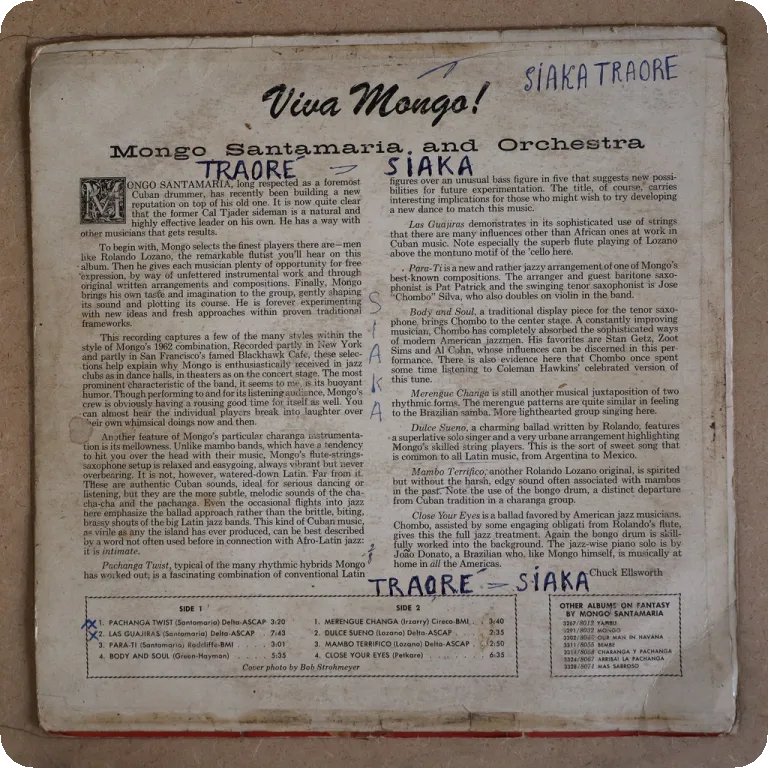 Check the one side montuno track "kanan n'djanfa". Some wear on cover, 10" split on bottom, 1,5" split on top, writings & small peel off on back, shop sticker on front, warp & creas on bottom mouth
