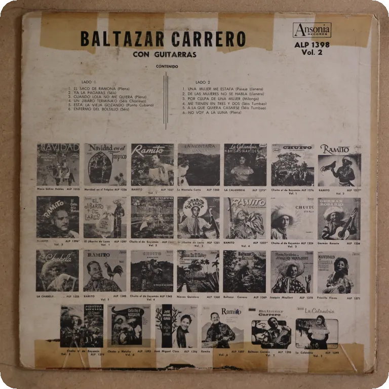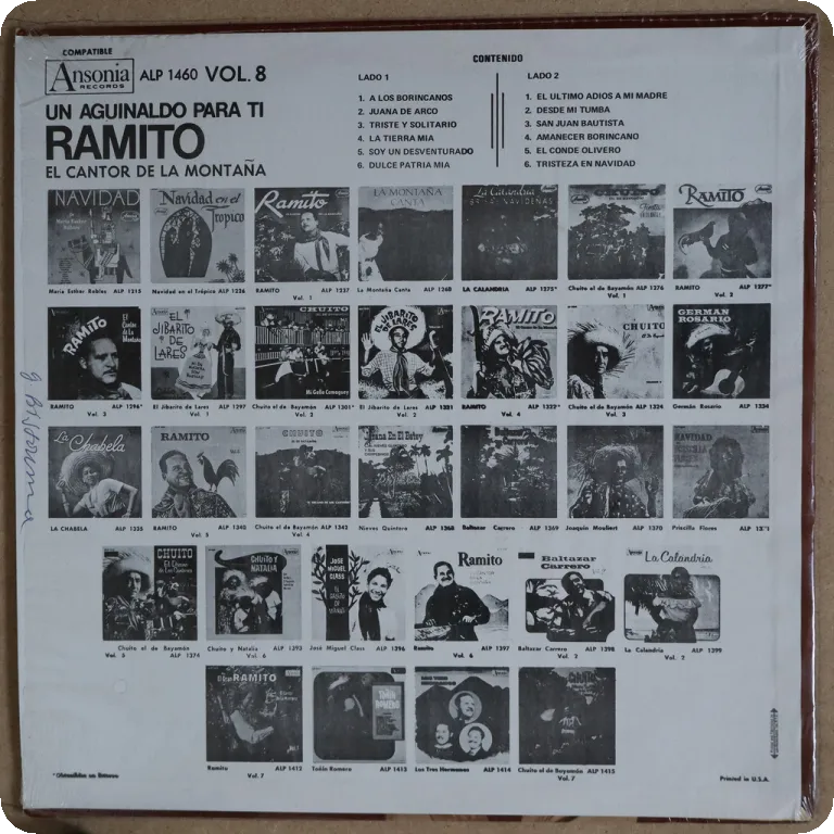 Again most tracks are winners on this jibaro music LP by one of the Puerto Rican masters of the genre. Sleeve in OG shrink, writings along mouth and on labels. Record plays sweetly.