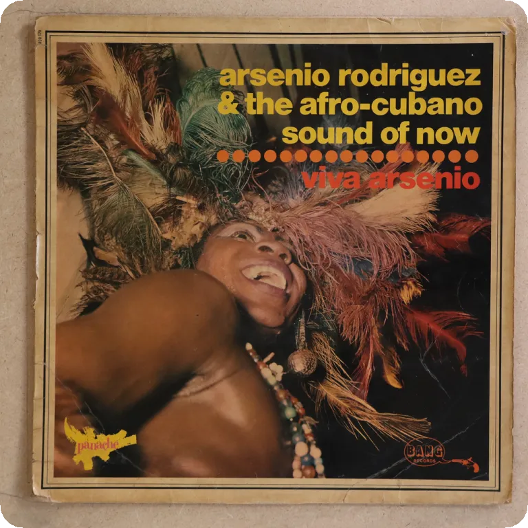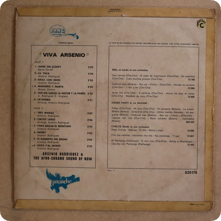 Raw sones montunos, pachanga & other latin beats by the Cuban legend. 70's issue, no deep groove, wear on cover, glue residue, small peel off & large writings on front, large writings on back, record