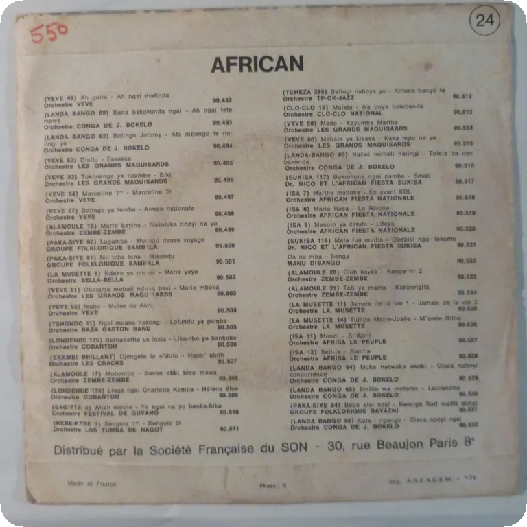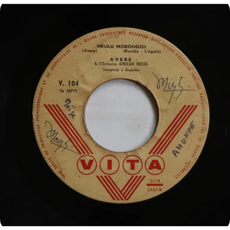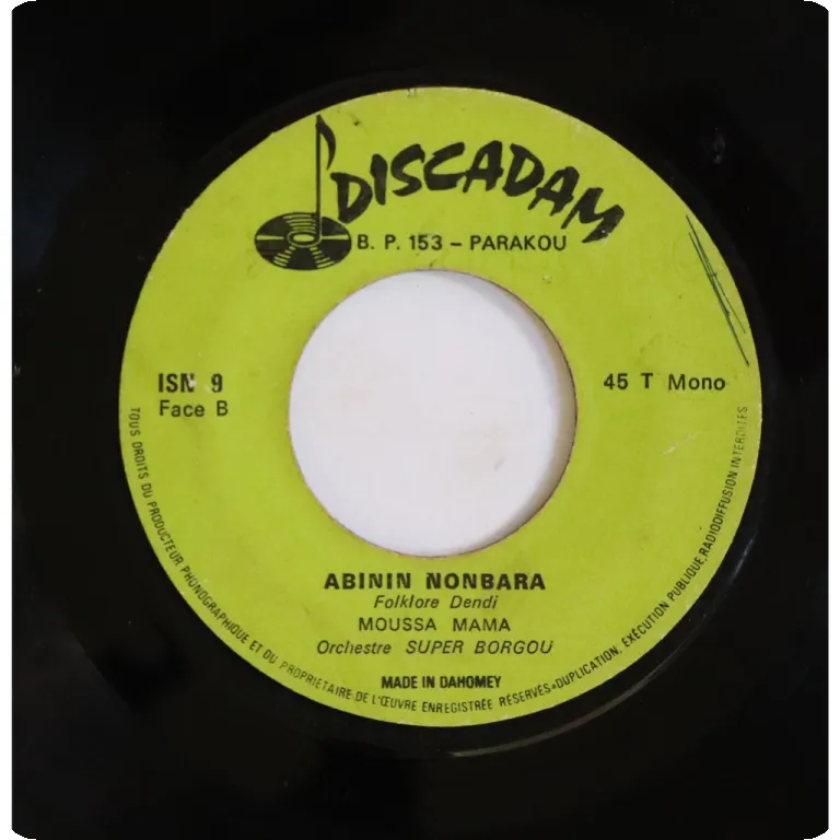 A cover of the 50's tune made famous by the Cuban charanga America del 55 as recorded by the Beninese singer. Surely among his rarest releases ever, never shows up ! Labels have writings. Record plays