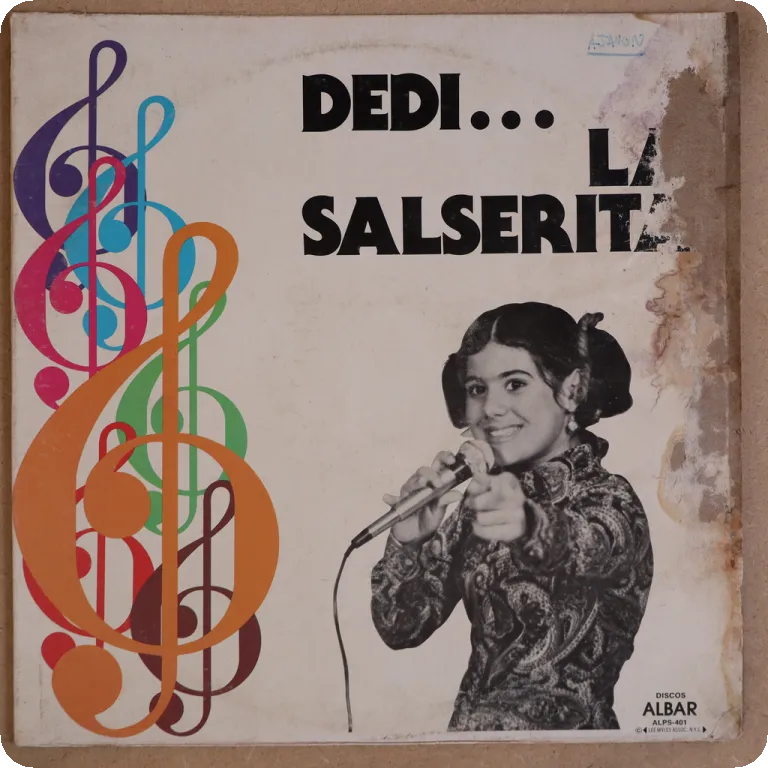 Dancefloor winners on this scarce Puerto Rican salsa lp arranged by Bobby Quesada and feat. Young 12 years old singer Dedi, sleeve w/ large peel off & beige water damage along mouth, writings on cover