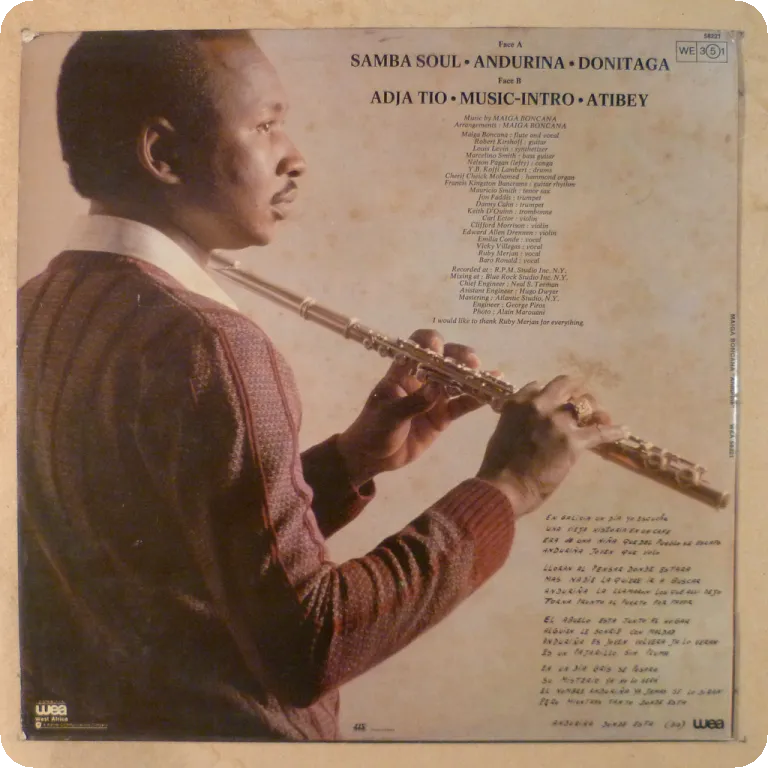 Solid afrodisco boogie tunes by the Malian maestro, minor wear on cover, dirt on back, plays w/ light noise in parts to no noise most of the time.