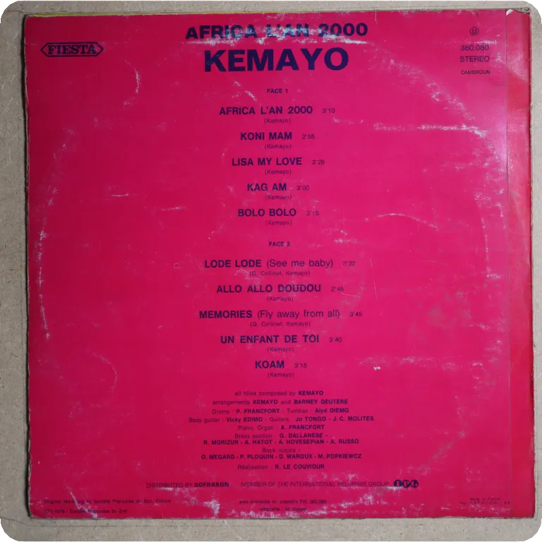 Clubby afro disco track recorded by African musician in Paris - France. Light ringwear & dirt wear on back cover