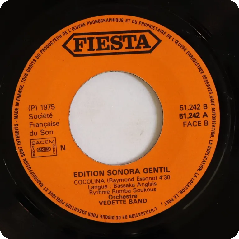 Kenyan soukous double sider winner, mislabelled as Vedette band on this ultra rare French press. Writing on A side label, light to hardly noticeable noise, VG to VG++.