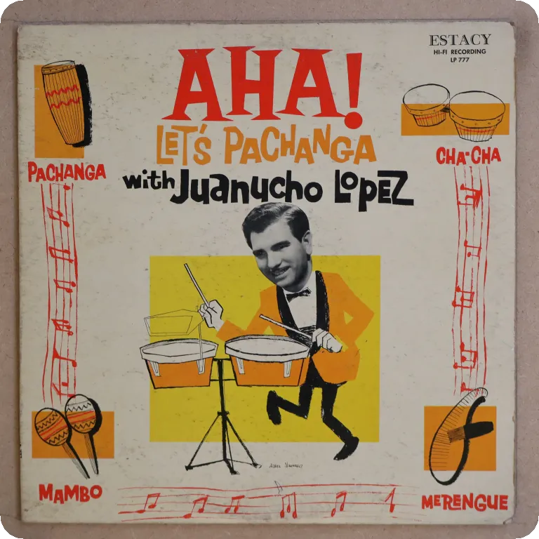 Pachangas & mambos on this solid lp, sleeve has some aging/dirt, 3" split on top, writings & peel off on back. Record plays with light constant pressing noise & some occasional noise from marks, very