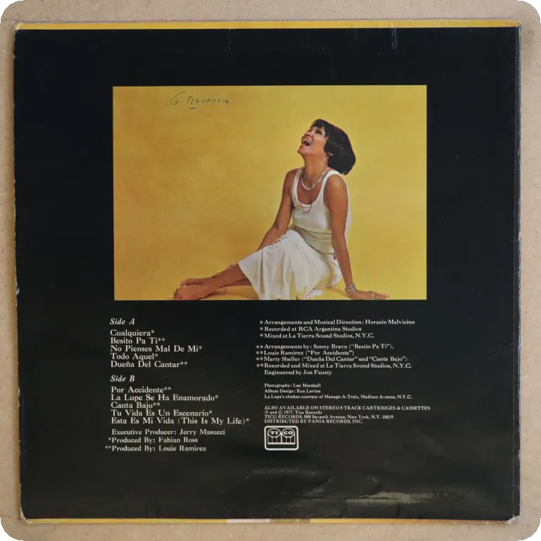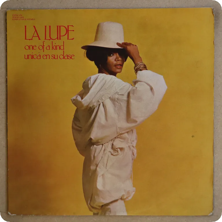 Salsa winners on this later LP by La Lupe. Light warp of the upper paper cover along bottom from humidity, small writings on back. Record in top shape, plays sweetly with minor inaudible dirt residues