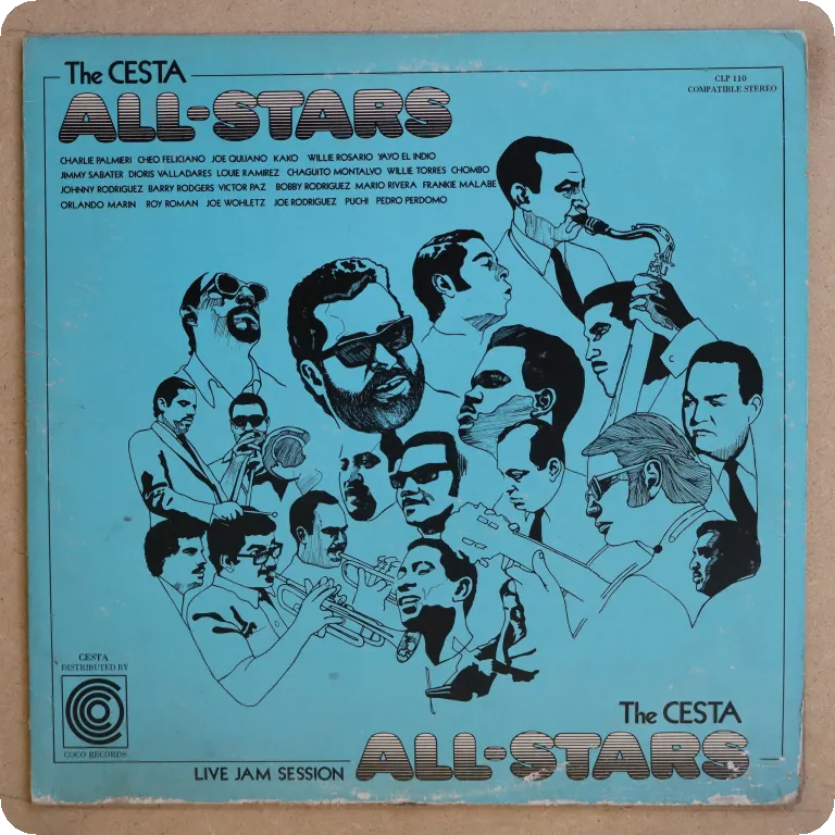 Killer latin jazz / salsa live session w/ Sabater, Cheo Feliciano, Louie Ramirez, Yayo, Quijano…Aging & light dirt wear, split on all bottom, light crackling & some mini peel off along bottom front