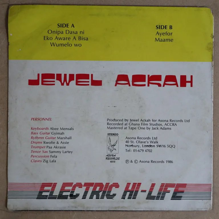 A laid back tropical dancefloor highlife soukous synth winner & a consistent highlife synth LP out of Ghana ! Aging & dirt wear on cover, white paper tape along seams & spine, rubber stamps on front