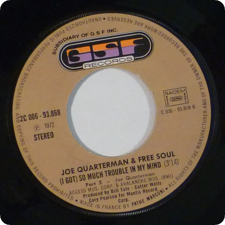 Hard soul & psych soul instrumental winners by this California band, scarce French pic sleeve. Discolouration on front, rubber stamps & writings on back & labels, plays solid VG- to VG w/ light to