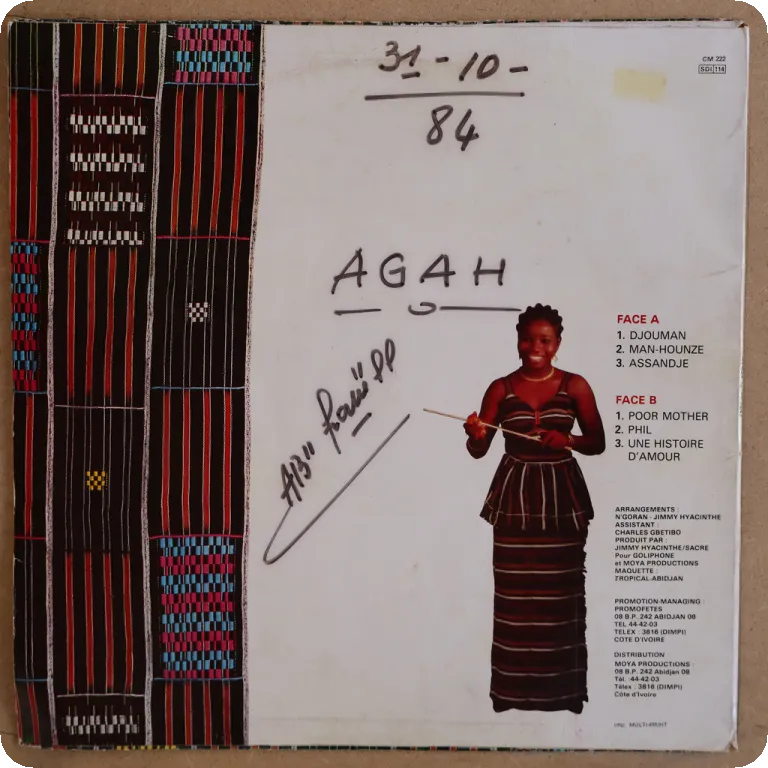 Tropical dancefloor afro synth pop from Cote d'Ivoire, powerful production, surely one of the next tropical deejays most wanted ! Sleeve has aging & dirt, mini bite on top spine, peeling of the upper