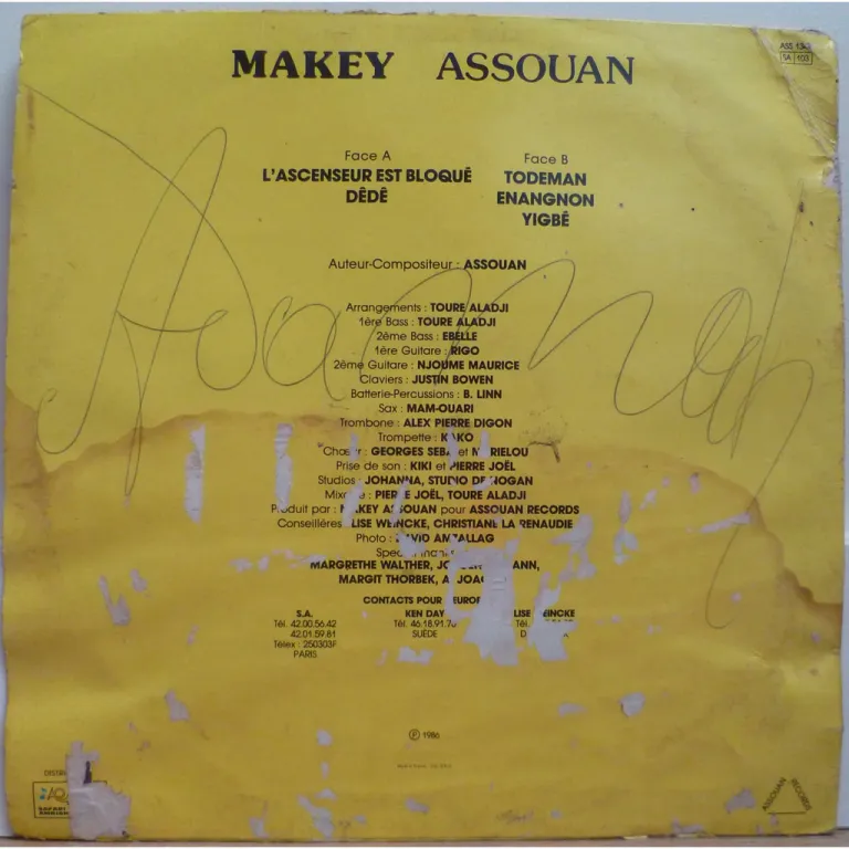 Afro synth frantic floor filler aon this off the radar sure scarce release by Benin artist. Sleeve has strong aging & dirt, large brown water damage on half bottom, peel off & paper stuck, large writings, warp, record has light to very light noise from marks.