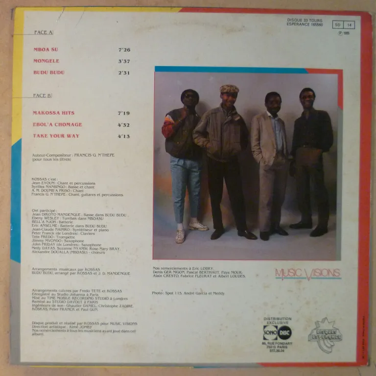 A boogie disco tune, a hypnotic afro synth track & a consistent afro pop LP recorded in France by Cameroon artist w/ French West Indies funky arranger Jacob Desvarieux from Kassav'. Sleeve w/ minor
