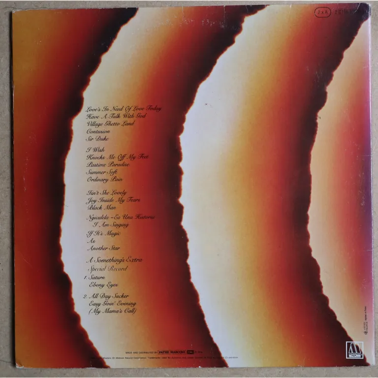 Spacey disco / cosmic synth rock double sider with an original compo and a cover of Stevie Wonder's classic. Sleeve has some dirt, light aging, record has occasionally noticeable light noise.
