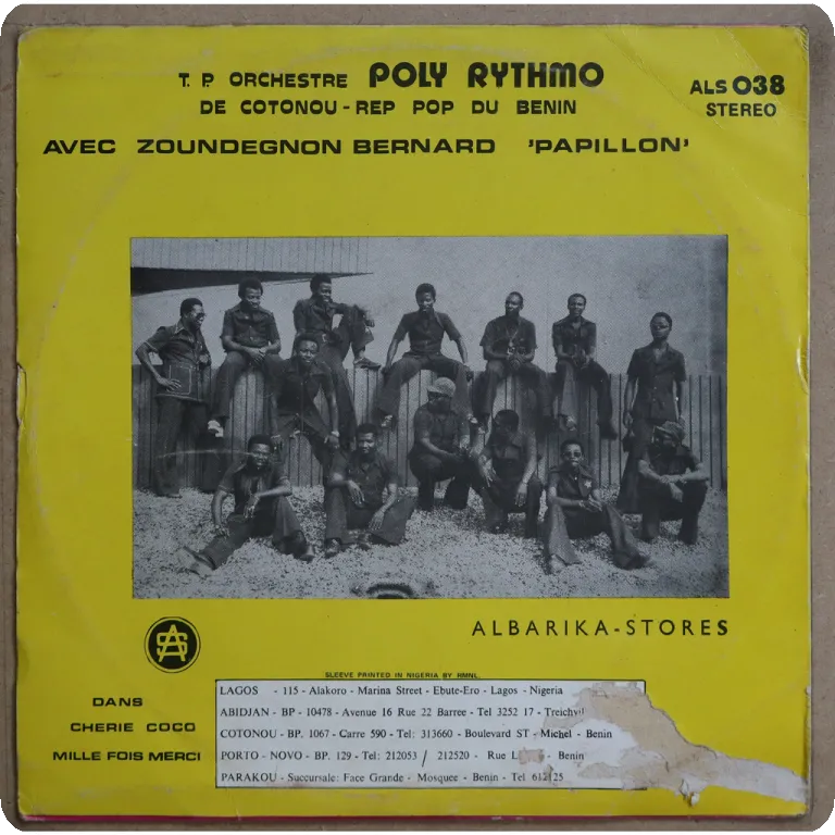 Tropical dancefloor alltimes soukous classic from Benin, aging & dit on cover, ringwear, creases, writings on labels, record has light to hardly audible noise only despie marks.