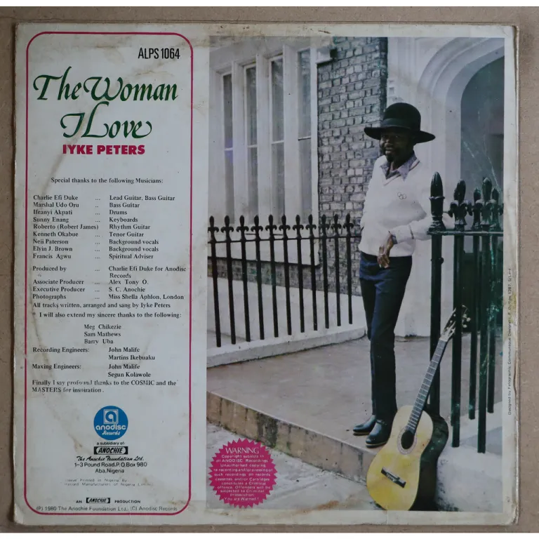 Nigerian boogie disco/modern soul on the cheesy side of things, sleeve has aging & dirt, small writings on back & labels, record plays well despite numerous thin marks