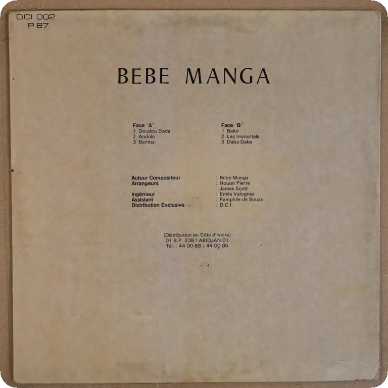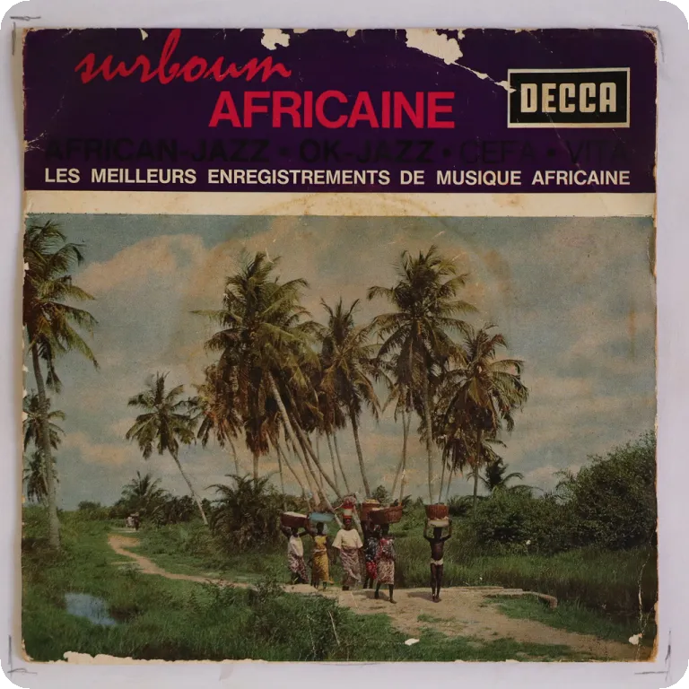 Great bolero & rumba as recorded by the Congo legends on this super scarce 7", dirt & aging on cover, peel off on front, writings & beige wear on back, record has marks & constant quite reasonable to